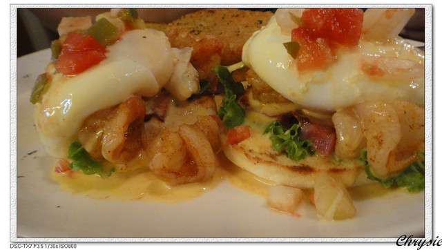 (蛋+火腿+生菜+蝦子+馬芬) 全部沾上荷蘭醬 = 100分美味!!